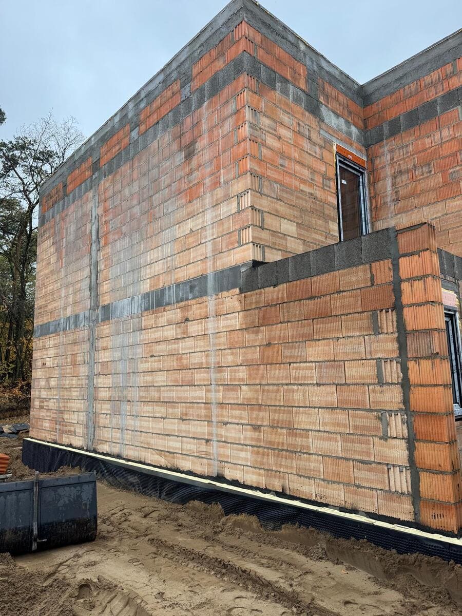 Zakończyliśmy prace murarskie oraz wykonaliśmy izolację fundamentów. Budynek osiągnął stan „zero”, co oznacza ukończenie fundamentów oraz najniższych partii ścian.